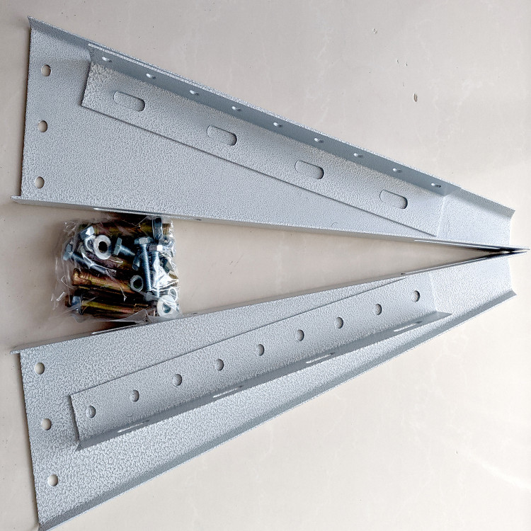 پایه دیواری کولر گازی براکت دیواری: در بسیاری از مکانها به علت دور بودن واحد از پشت بام و یا نداشتن دسترسی به آن باید کمپرسورخارجی را بر روی دیوار نصب کرد. از طرف دیگر کمپرسور و پنل داخلی باید در نزدیکترین فاصله نسبت به هم نصب شوند که باید با استفاده از پایه دیواری این کار را انجام داد. انواع مختلفی از پایههای دیواری در بازار موجود هستند که اندازههای مختلفی دارند تا بتوانند وزن ظرفیتهای مختلف واحد خارجی کولر گازی را تحمل کنند. در هنگام نصب پایه باید دسترسی آسان برای تعمیرات را در نظر گرفت تا بعد از نصب و بعد از گذشت زمان اگر احتیاج به سرویس و یا تعمیر کولر گازی را داشته باشیم بتوان این کار را انجام داد. از طرف دیگر باید محل نصب فضای کافی داشته باشد و جریان هوا به خوبی انجام شود. این نوع پایه کولرگازی مناسب برای کولر های 9000 تا 24000 هزار میباشد. نکته قابل توجه در این براکت استفاده از ورق 2 میلیمتر فولادی است که مقاومت فوقالعادهای داشته و استفاده از رنگ کورهای چکشی نیز مقاومت چشمگیری در مقابل خوردگی ایجاد کرده و مانع از تخریب پایه حتی در مناطق شرجی خواهد شد.