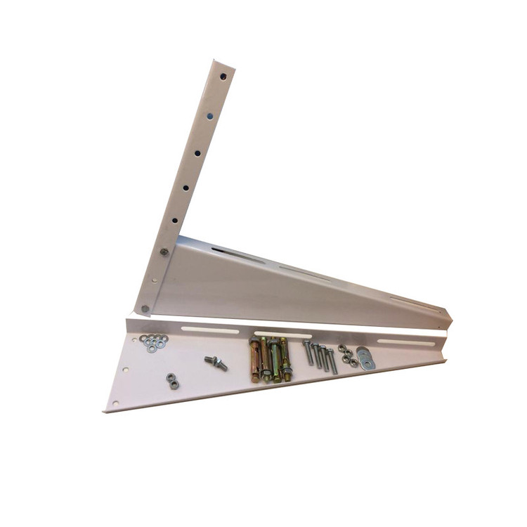 پایه دیواری کولرگازی مناسب برای مکان هایی که امکان دسترسی به پشت بام وجود ندارد و کمپرسور را روی زمین نمی توان گذاشت و از طرفی هم هرچه پنل داخلی نزدیک تر به پنل خارجی باشد راندمان دستگاه بالاتر می رود به همین دلیل از این پایه ها جهت نصب بروی دیوار تراس یا دیوار ساختمان استفاده می شود.طراحی این نوع پایه ها به گونه ای است که از قسمتی که به دیوار متصل می شود دارای فاصله ای باشد که هوا دارای جریان باشد و مقدار لوله های اضافه هم در پشت دستگاه می توان مخفی کرد.این محصول مناسب جهت کولرهای با ظرفیت 18000 و 24000 می باشد.