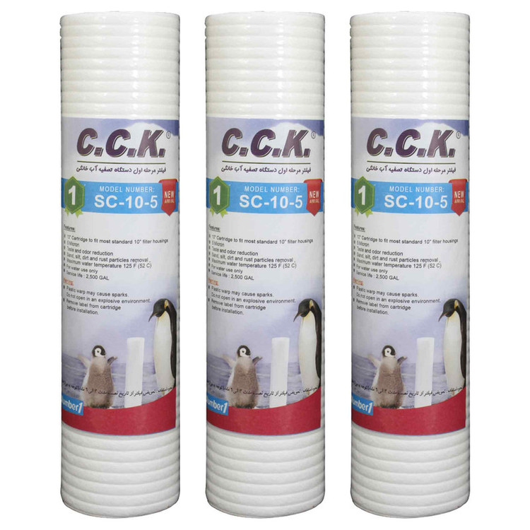 فیلتر الیافی اولین فیلتر دستگاه تصفیه آب میباشد. جنس مواد سازنده این فیلتر الیاف پلی پروپیلن میباشد به همین دلیل این فیلتر را بیشتر با نام polypropylene) PP) میشناسند. وظیفه این فیلتر جذب گل و لای، شن و ماسه، جلبک، ذرات موجود در آب میباشد تا آب را برای مراحل بعدی تصفیه آماده کند. فیلتر الیافی تصفیه آب سی سی کا مدل SC-10-5 با دقت 5 میکرون هر ذره ای که بزرگتر از 5 میکرون در آب وجود داشته باشد را به خود جذب میکند. عمر مفید اکثر فیلتر های الیافی بین 3 تا 6 ماه میباشد و برای تضمین کیفیت آب مصرفی و همچنین طول عمر قطعات دیگر دستگاه تصفیه آب باید پس از شش ماه آن را تعویض کنید.