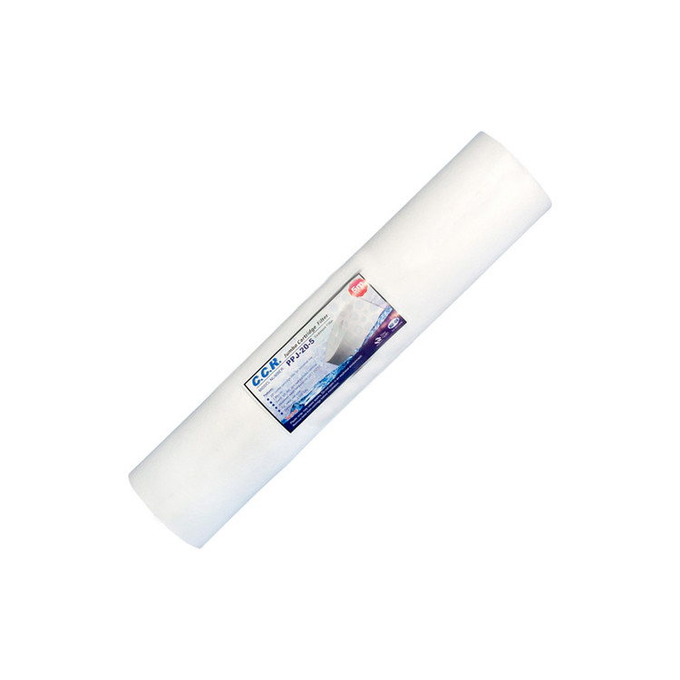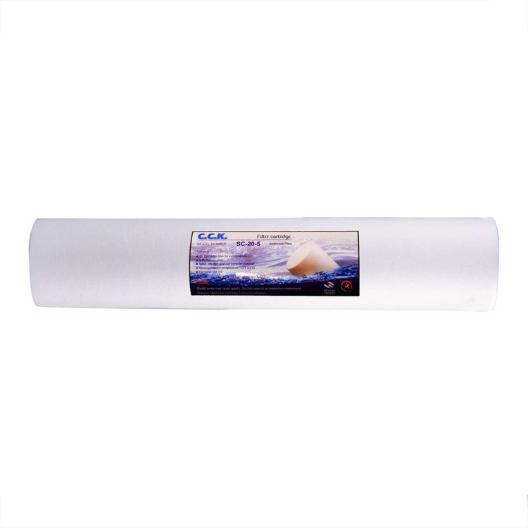 این فیلتر بعنوان فیلتر مرحله اول با قابلیت حذف ذرات جامد معلق در آب تا اندازه 5 میکرون شامل : گل و لای و ماسه و زنگ آب و... می باشد. فیلترجامبو از جنس پلی پروپیلن (pp) با طول 20 اینچ (حدود 51 cm) و قابل استفاده در تمام هوزینگهای جامبو 20 اینچ با هر برندی میباشد. بیشترین کاربرد پیش فیلترهای جامبو در ورودی ساختمانها برای حذف ذرات ریز معلق در آب ورودی می باشد وزمان تعویض این فیلتر بستگی به میزان ذرات معلق در آب ورودی آب و مقدار (دبی) مصرف دارد و ممکن است بین 1هفته (در مناطق با آب ورودی پر ذره و تعداد واحدهای زیاد در مجتمع )تا چند ماه (برای یک واحد با مصرف کم آب و کیفیت آب ورودی خوب) متغیر باشد.