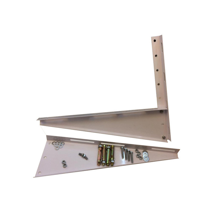 پایه دیواری کولرگازی مناسب برای مکان هایی که امکان دسترسی به پشت بام وجود ندارد و کمپرسور را روی زمین نمی توان گذاشت و از طرفی هم هرچه پنل داخلی نزدیک تر به پنل خارجی باشد راندمان دستگاه بالاتر می رود به همین دلیل از این پایه ها جهت نصب بروی دیوار تراس یا دیوار ساختمان استفاده می شود.طراحی این نوع پایه ها به گونه ای است که از قسمتی که به دیوار متصل می شود دارای فاصله ای باشد که هوا دارای جریان باشد و مقدار لوله های اضافه هم در پشت دستگاه می توان مخفی کرد.این محصول مناسب جهت کولرهای با ظرفیت 30000 می باشد.