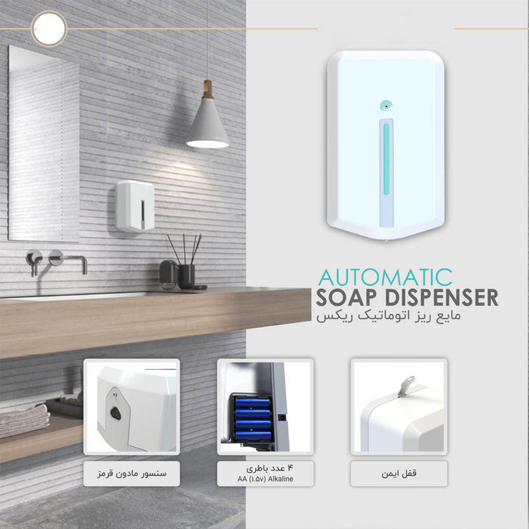 دستگاه کف ساز صابون هوشمند RIX 3907 دارای منبع تغزیه با باتری دارای نمایشگر حجم مخزن میباشد و با سنسور مادون قرمز بدون نیاز به تماس دست به راحتی قابل استفاده است.این و موتور آن کاملا بی صدا است.استفاده از دستگاه های فوم ساز صابون اتوماتیک بدلیل حفظ بهداشت (عدم لمس بدنه) و مصرف بهینه مایع دستشویی فوم و همچنین هوشمند بودن مورد استقبال قرار گرفته است . فوم ریز هوشمند با حجم 1100 سی سی (1.1 لیتر) ؛