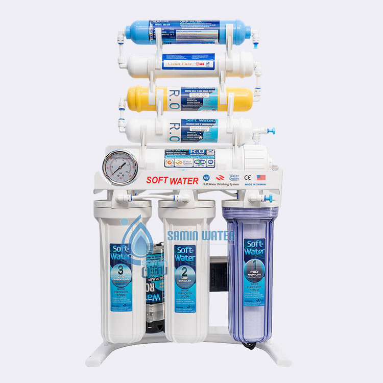 سیستم تصفیه آب سافت واتر ۸ مرحله ای شما نه تنها آب را سالم و بهداشتی میکند، بلکه آن را با مواد معدنی ضروری غنی میکند، تا اطمینان حاصل شود که شما همیشه هیدراته میمانید ، احساس تفاوت در سلامتی و روحیه خود خواهید کرد و از آبی که از آلودگیها خالی و پر از خواص است ، استفاده میکنید.