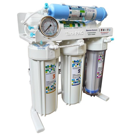 دستگاه تصفیه اب تانک پک هفت فیلتر ساخت تایوان و با استفاده از روش اسمزمعکوس آب را تا 99% تصفیه میکند.شرکت تانک پک یک شرکت تایوانی مشهور در زمینه تصفیه اب است.معروف ترین محصول این شرکت مخزن تانک پک است.که بر روی 90% دستگاه های وارداتی وجود دارد.دستگاه تصفیه اب تانک پک به صورت CKD(قطعه-قطعه)وارد میشود و توسط نمایندگی انحصاری این محصول در ایران مونتاژ و به بازار عرضه میشوند.به دلیل مونتاژ داخل بودن این دستگاه قیمت آن نسبت به دستگاه تصفیه اب تمام وارداتی که به صورت پک وارد میشوند قیمت بسیار مناسب تری دارد.فیلتر هفتم این دستگاه محافظ ممبران بوده و با جداسازی ذرات درشت قبل از فیلتر ممبران باعث افزایش طول عمر آن میشود.مخزن این دستگاه همانطور که گفته شدن ساخت شرکت تانک پک و از مدل TP-19 است.پمپ این دستگاه ساخت شرکت رادیات و از پر قدرت ترین پمپ های تایوانی بازار است.به هر شکل اگر بخواهیم یک جمع بندی کلی راجب این دستگاه داشته باشیم یکی از بهترین تصفیه اب های موجود در بازار است.